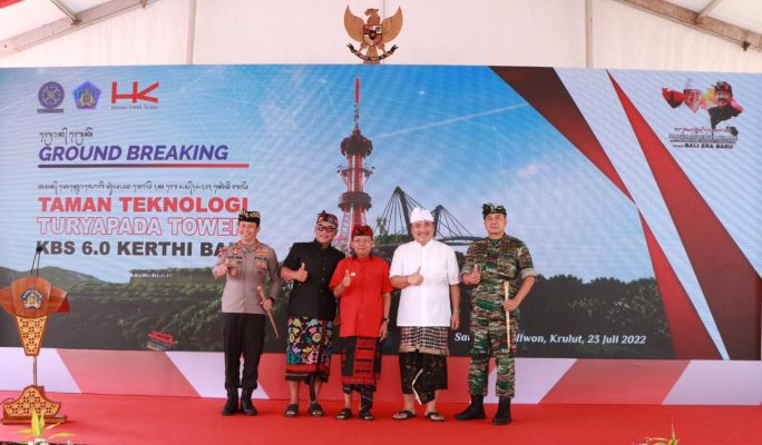 Melaksanakan peletakan batu pertama (ground breaking) sebagai tanda dimulainya pembangunan TURYAPADA TOWER KBS 6.0 KERTHI BALI, pada Sabtu (Saniscara Kliwon, Krulut), 23 Juli 2022, di Desa Adat Amerta Sari,