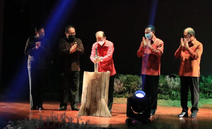 Denpasar – Ditandai dengan penancapan pedang, Gubernur Bali Wayan Koster secara resmi membuka kegiatan Festival Seni Bali Jani (FSBJ) III Tahun 2021 yang berlangsung di Gedung Ksiraarnawa, Taman Budaya Denpasar pada Sabtu (Saniscara Paing Warigadian) bertepatan tanggal 23 Oktober 2021.
