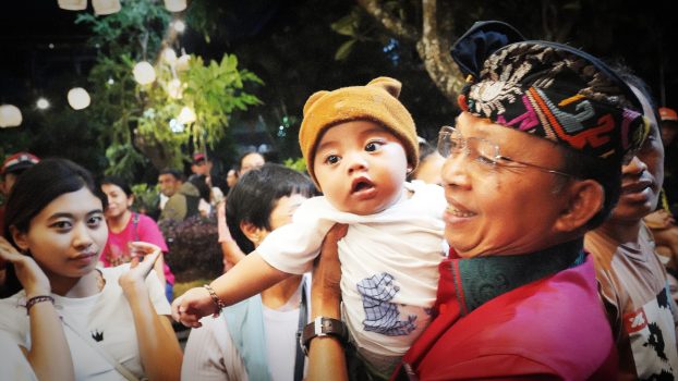 Setibanya di panggung terbuka Ardha Candra, Gubernur Bali Wayan Koster disambut riuh penonton yang hampir seluruhnya anak muda.