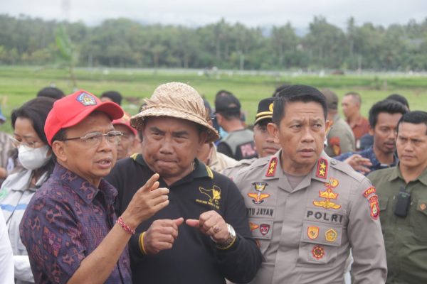 Persindonesia.com Jembrana – Musibah banjir bandang di Kabupaten Jembrana khususnya di desa Penyaringan mendapatkan perhatian dan kunjungan dari Gubernur Bali I Wayan Koster, Selasa (18/10) Didampingi Bupati Jembrana I Nengah Tamba rombongan yang juga menyertakan Kapolda Bali, Irjen.Pol. Drs Putu Jayan Danu Putra,S.H,. M.Si, BPBD Provinsi Bali, dan PU Bina Marga Provinsi Bali selain melakukan peninjauan di jembatan yang merupakan akses jalur lalu lintas (lalin) menuju Denpasar juga meninjau Pos pos pengungsian yang dihuni ratusan kepala keluarga (KK) yang terdampak.