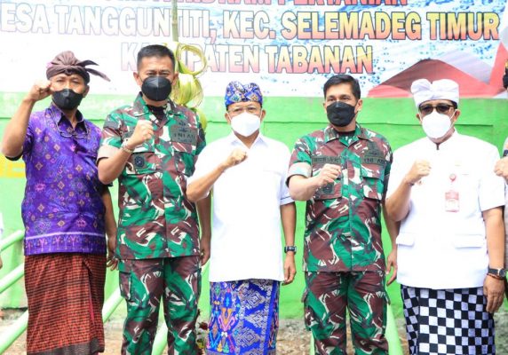 Tabanan (Persindo) – Gubernur Bali, Wayan Koster bersama Pangdam IX Udayana, Mayjen TNI Sonny Aprianto dan Bupati Tabanan, Komang Gede Sanjaya meresmikan Bendungan Pompa Hidram di Subak Nyampuan, Desa Tangguntiti, Selemadeg Timur, Tabanan, pada Rahina Purnama Sasih Kesanga, Selasa (Anggara Paing Bala) 15 Pebruari 2022.