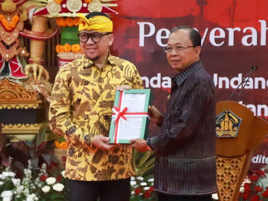 Bali – Gubernur Bali, Wayan Koster menerima dokumen Undang – Undang