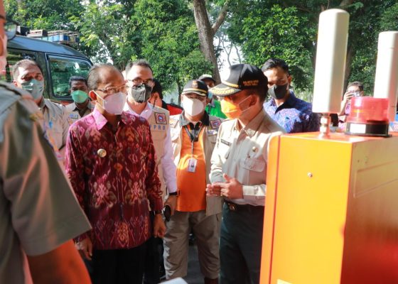 Usai menjadi Pembina apel, Gubernur Bali bersama Kepala Badan Penanggulangan Bencana Daerah Provinsi Bali Made Rentin melakukan peninjauan terhadap mobil kesiapsiagaan bencana Provinsi Bali.