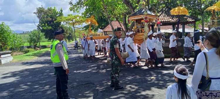 Guna Menjaga Keamanan Dan Ketertiban, Babinsa Desa Yehembang Kauh Kawal Upakara Ngusaba Desa Adat Kedisan