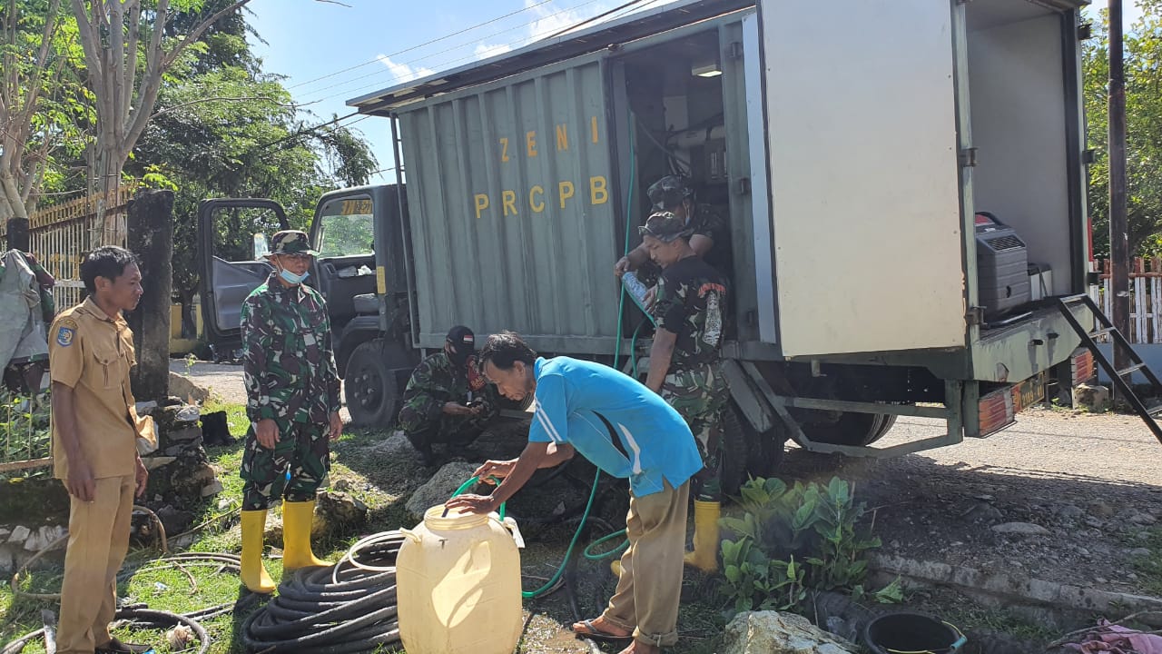 Dipimpin Perwira Zeni Angkatan Darat (Pa Ziad) Letda Czi Syarifudin, air bersih yang didistribusikan kepada warga merupakan air siap konsumsi (siap minum) menggunakan alat penjernih air RO (Reverse Osmosis Industrial)