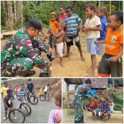“Kami keliling kampung dan menyapa anak-anak untuk menghadirkan keceriaan disaat mereka libur sekolah dengan mengajak bermain bersama serta memberikan gula-gula,” tambah Danpos Yuruf.
