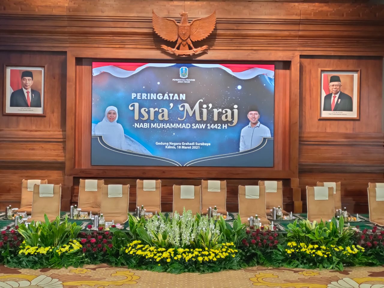 SURABAYA,Persindonesia,- Peringatan Isra’ Mi’raj NABI MUHAMMAD SAW 1442 H di Gedung Negara Grahadi Surabaya Kamis, 18/3/2021 pukul 19.00 wib.
