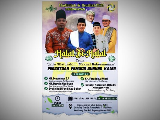 “Acara halal bi halal tersebut akan di selenggarakankan pada hari Jum’at malam sabtu anggal 28 April 2023 di kampung gunung Kaler RT 01 RW 01 desa gunung Kaler kecamatan gunung Kaler kebupaten Tangerang,” ucap Ustadz Tabrani, Selasa (25/4/2023).