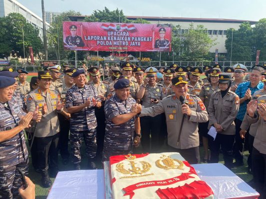 Surprise diberikan dalam bentuk Kue Ulang Tahun yang langsung diterima Kapolda Metro Jaya. “Selamat Hari Bayangkara ke-76 semoga Polri semakin Jaya,” ucap Laksdya Abdul Rasyid kepada Kapolda Metro Jaya Irjen Pol DR. Mohammad Fadil Imran, M.Si. di sela-sela acara upacara Korps Raport kenaikan pangkat anggota Polda Metro Jaya,
