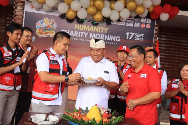 Kegiatan inti Humanity Charity Morning dibuka Bupati Jembrana I Nengah Tamba bersama Wakil Bupati Jembrana IGN Patriana Krisna (Ipat) yang sekaligus Ketua PMI Kabupaten Jembrana ditandai dengan pemotongan tumpeng bersama, Minggu (17/9) di Gedung Kesenian DR. Ir. Soekarno.