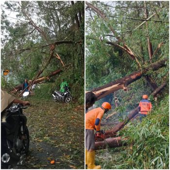 “Dan akibat pohon tumbang arus lalulintas terganggu dan tidak bisa dilalui, selain itu jaringan PLN juga terganggu”, terangnya.