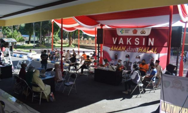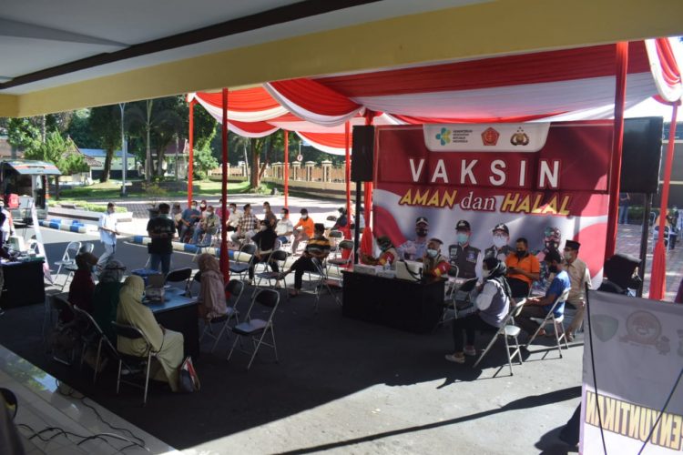 BONDOWOSO, Persindonesia – Polres Bondowoso menggelar bakti sosial vaksinasi kepada ribuan warga di beberapa titik di Bondowoso. Salah satunya yakni di Halaman Pemda, Sabtu (26/6/2021).