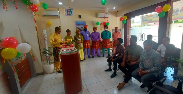Tapung Hilir – Dalam rangka memperingati HUT Bank RiauKepri ke 56, kantor Kas Kota bangun merayakan kegembiraannya dengan melakukan pemotongan kue ulang tahun dan potong tumpeng bersama mitra kerja dan nasabah, Jum’at 01-04-2022.
