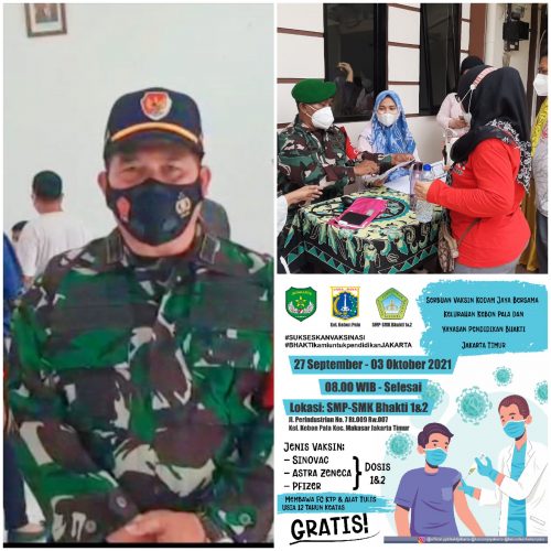 Lanjut Danramil, untuk kegiatan vaksinasi ini Koramil 05/Kramatjati, Ciracas bersinergi dengan pihak Yayasan Pendidikan Bhakti dan Lurah Kebon Pala dan didukung oleh tenaga kesehatan Kesdam Jaya, Polkes Cijantung, Puskesmas Kelurahan dan input data dari relawan.