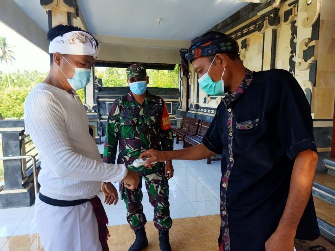 Lebih lanjut Sertu Kadek Wirawanta menuturkan kegiatan masyarakat yang memungkinkan akan menimbulkan kerumunan tentunya memiliki resiko penyebaran Covid-19 yang tinggi, untuk itu dirinya bersama aparat terkait semaksimal mungkin terus melakukan upaya pencegahan penyebaran Covid-19 sehingga penerapan Protokol Kesehatan menjadi ketentuan yang utama harus dipatuhi.(Pendim/Red)