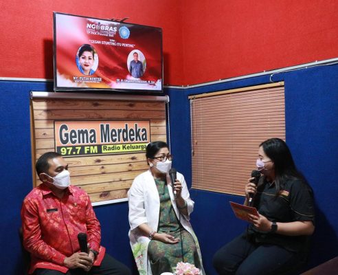 Denpasar – Ketua TP PKK Provinsi Bali Ny. Putri Suastini Koster didampingi oleh Kepala Dinas Kesehatan Provinsi Bali I Nyoman Gede Anom menjadi narasumber dalam acara Ngobras di Radio Gema Merdeka dengan tema “Cegah Stunting itu Penting”, pada Senin (Soma Paing Merakih), 25 Juli 2022.