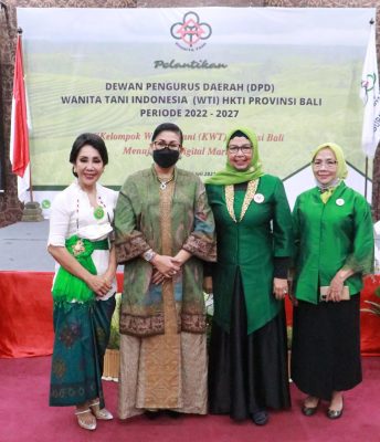 Sementara itu Ketua Umum DPP WTI HKTI Hj. Ony Jafar Hafsah, menyampaikan apresiasi atas dukungan Ketua TP PKK Provinsi Bali kepada WTI HKTI Bali, sehingga menjadi yang pertama melakukan pelantikan pengurus DPD. Diharapkan kegiatan dari DPD selalu ikut memberdayakan Kelompok Wanita Tani di Bali sehingga kedepan KWT Bali akan semakin menggeliat dengan produk-produk unggulannya.