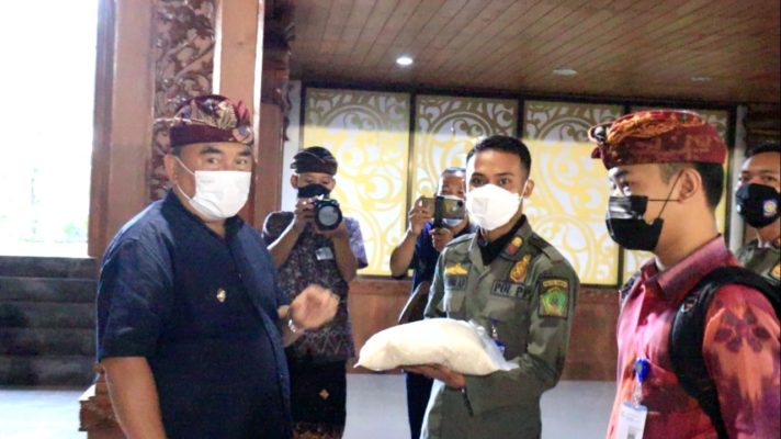 Persindonesia.com Jembrana – ASN dilingkup Pemkab Jembrana turut berbagi sebagai wujud kepedulian dan kebersamaan. Setidaknya sebanyak 7,1 ton beras hasil gotong royong ASN itu dibagikan kepada rekan rekannya yang merupakan pegawai kontrak di lingkup Pemkab Jembrana .Secara simbolis beras tersebut , diserahkan Bupati Jembrana I Nengah Tamba kepada 10 pegawai Non ASN (tenaga kontrak), Kamis (28/4/2022) di Gedung Auditorium Jembrana.