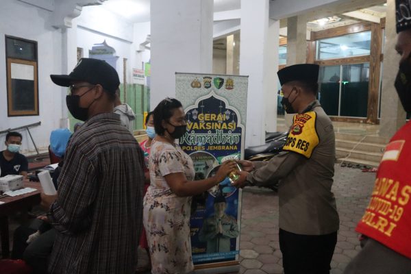 Persindonesia.com Jembrana – Untuk mempercepat target vaksinasi di bulan puasa dan menjelang Hari Raya Idul Fitri, Kapolres Jembrana AKBP I Dewa Gde Juliana didampingi Kapolsek Kawasan Pelabuhan Gilimanuk Kompol I Gusti Putu Dharmanatha pantau vaksinasi di Areal Masjid Al-Mubaroq Kelurahan Gilimanuk, Kecamatan Melaya, Jembrana.
