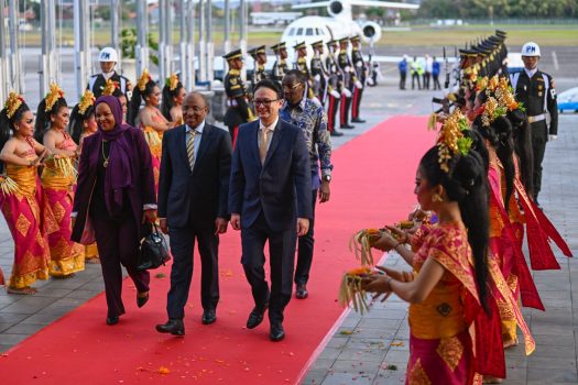 Caption Foto – Presiden Zanzibar Hussein Ali Mwinyi (tengah) didampingi Wakil Menteri Perdagangan Jerry Sambuaga (kanan) disambut dengan tarian khas Bali setibanya di Bandara Internasional I Gusti Ngurah Rai, Badung, Bali, Sabtu (31/8/2024). Hussein Ali Mwinyi tiba untuk menghadiri High-Level Forum on Multi-Stakeholder Partnerships and Indonesia-Africa Forum II di Nusa Dua, Bali pada 1-3 September.