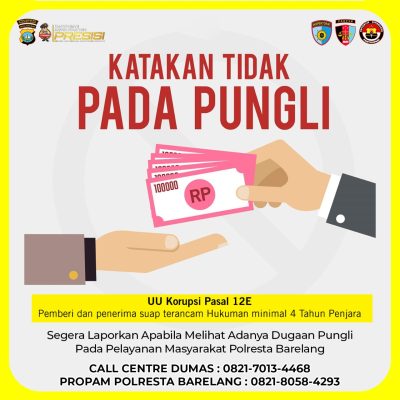 “Saya himbau kepada masyarakat agar berhati-hati apabila mau mengurus SIM, SKCK maupun SPKT jangan melalui calo, silahkan datang ke Gedung pelayanan Paramasatwika Polresta Barelang, kami sudah menyiapkan petugas untuk melayani masyarakat, dan apabila ada keluhan silahkan hubungi kontak pengaduan call centre kami di 0821-7013-4468 dan Propam Polresta Barelang 0821-8058-4293. Ungkap Kasihumas Polresta Barelang AKP Tigor Sidabariba, SH. Jeffri Batam