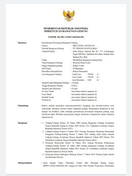 Perijinan yang dimaksud yang dimiliki oleh PT.Pesona Pantai Bali ini yakni : NOMOR: SK-PBG-510302-14052024-001 Persetujuan Bangunan Gedung dengan Pemilik Bangunan Gedung : PT. Pesona Pantai Bali.