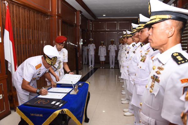 Persindonesia.com Jakarta, Serah terima jabatan pada hakikatnya merupakan proses pembinaan organisasi yang secara rutin dilaksanakan, hal ini merupakan upaya TNI Angkatan Laut dalam membina sistem regenerasi kepemimpinan di jajaran TNI AL. Bertempat di Gedung Laut Nusantara Mako Kolinlamil Jakarta Utara, Rabu (3/4) Panglima Kolinlamil Laksda TNI Hudiarto Krisno Utomo, PSC(j) M.A., M.M.S., CHRMP memimpin Upacara Serah Terima Jabatan (Sertijab) Pejabat Kolinlamil yang dihadiri Kepala Staf Kolinlamil Laksma TNI Mochammad Riza, S.E., M.Tr. Opsla., CRMP, Inspektorat Kolinlamil Laksma TNI Damayanti, S.H., M.M dan turut dihadiri Para Pejabat Utama Kolinlamil, Sahli Kolinlamil dan Para Kasatker Kolinlamil.