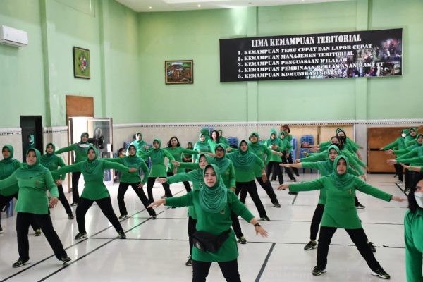 BONDOWOSO, Persindonesia – Persatuan Istri Tentara (Persit) Kartika Chandra Kirana (KCK) Cabang XXXVI Kodim 0822/Bondowoso melaksanakan senam pagi bersama bertempat di aula Jenderal Sudirman Makodim 0822 Jl. Letnan Sutarman No. 06 Bondowoso, Jumat (13/5).