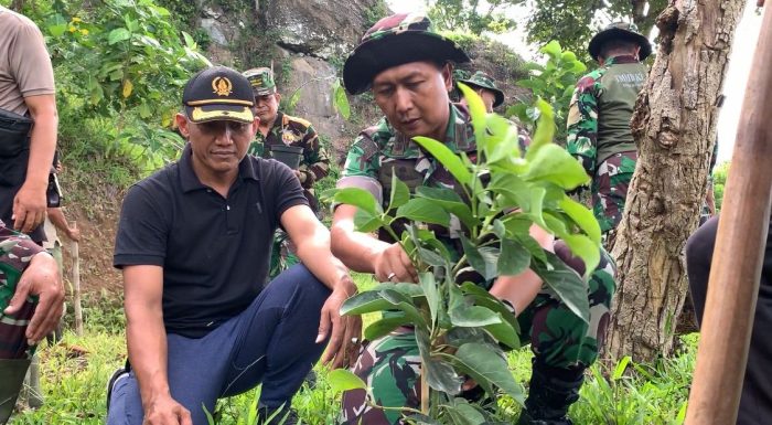 Persindonesia.com Jembrana, Sebagai upaya mendukung program penghijauan yang dicanangkan Komando Atas, Kodim 1617/Jembrana bersinergi dengan masyarakat penyanding hutan melaksanakan penghijauan penanaman tanaman buah bertempat di Kawasan KTH “Puncak Mawar” Lingkungan Dewasana, Kelurahan Pendem, Kecamatan Jembrana, Kabupaten Jembrana. Jumat (08/12/2023)