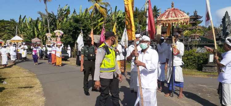 Persindonesia.com Jembrana – Ditengah aktivitas warga melaksanakan upacara keagamaan, penerapan protokol kesehatan dimasa pandemi Covid-19 saat ini tetap menjadi hal yang wajib untuk patuhi dan diterapkan. Untuk itu Babinsa bersama aparat terkait hadir ditengah warga untuk meyakinkan penerapan protokol kesehatan tetap dipatuhi.