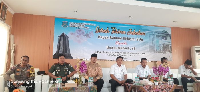 Sertijab langsung dipimpin oleh Camat Pamulang H Mukroni SE., M.Si yanh dihadiri oleh Danramil 08/Pamulang Mayor CHB Sutisna, Drs Munadi Sekcam Pamulang, Drs H Ahmad Sopian S.Pd Ketua MUI Pamulang, Lurah se kec. Pamulang, Babinsa Kelurahan Pamulang Barat Sertu Amran Simangunsong, Serda Ridwan Fauzan, Bhabinkamtibmas Kelurahan Pamulang Barat Aiptu Asep Ruhyana, Ketua RT/RW kelurahan Pamulang Barat, Tokoh masyarakat, Kader PKK dan Kader posyandu.