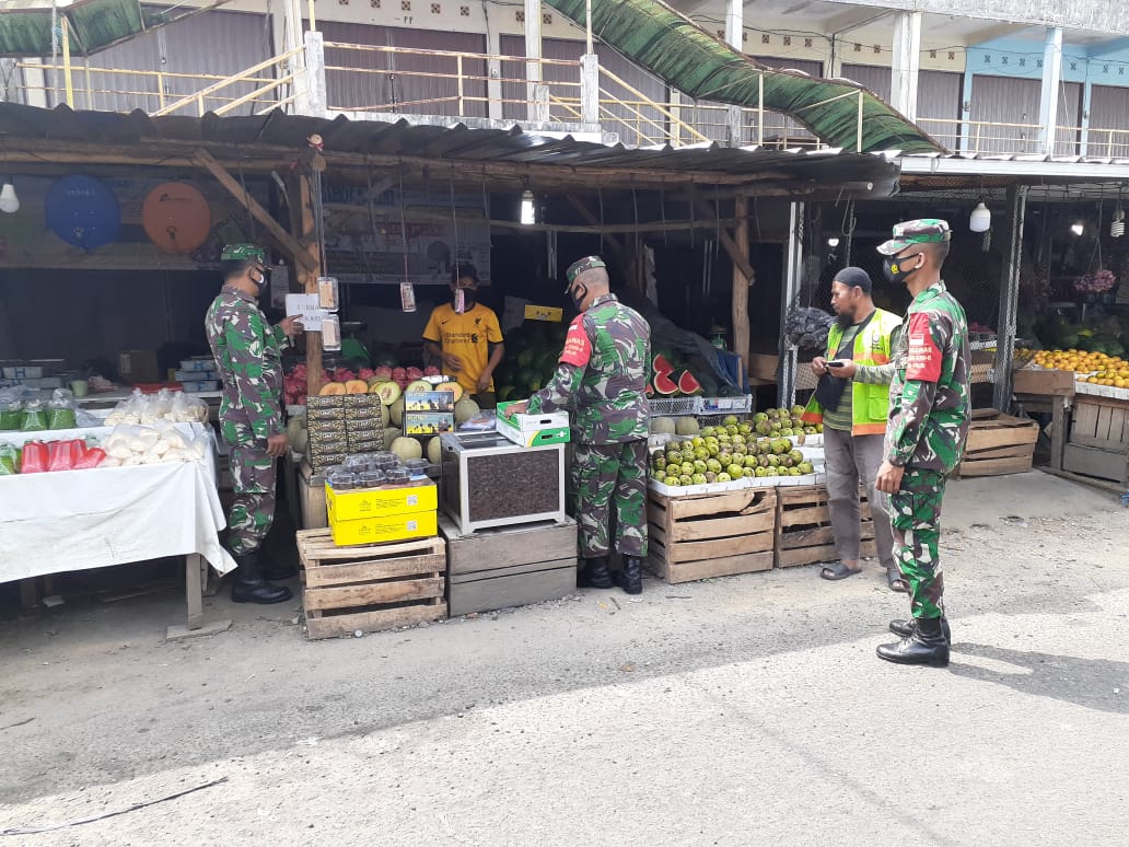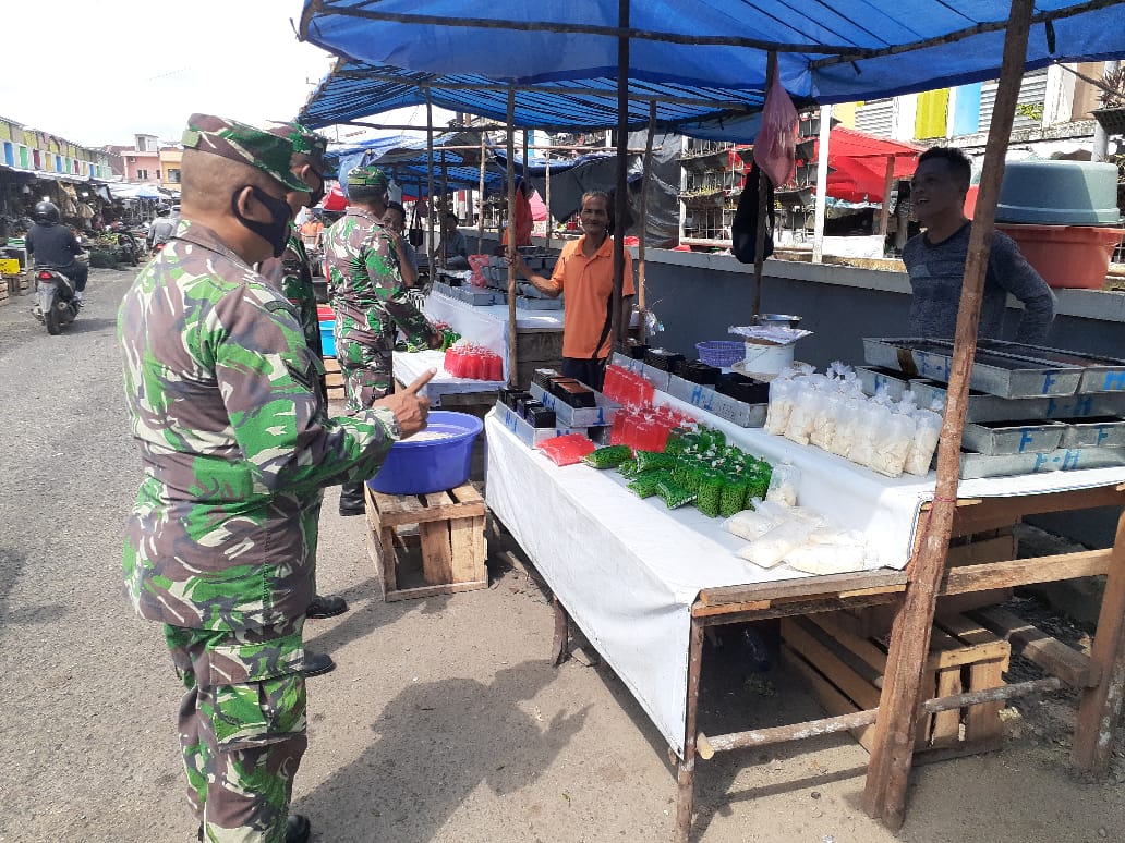 Seperti halnya yang dilakukan oleh Pelda Supangat,Sertu Arpandi,Serda Meri Yudianto,Prada Aditya personil Koramil 413-10/Bukit Intan,Rabu 28/4/2021 melaksanakan Patroli Protkes serta memberi himbauan kepada penjual dan pembeli di pasar induk Kelurahan Pasar Padi Kecamatan Girimaya Kota Pangkalpinang.
