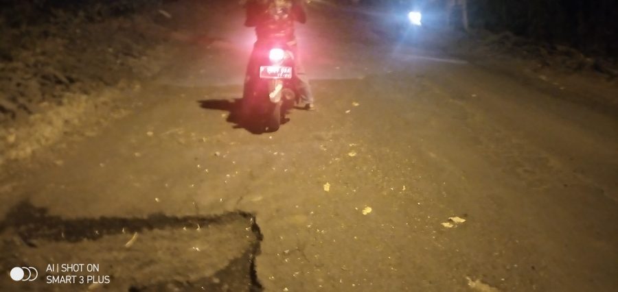Kondisi jalan penuh lubang semalam memakan korban dari yang jatuh hingga meninggal dunia, dan menurut warga akibat jalan berlubang tanpa ada tanda / plank sehingga membahayakan pengguna jalan.