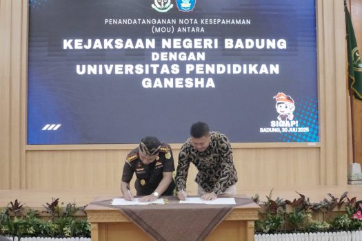 memperkuat kesadaran dan pemahaman hukum di kalangan akademisi dan praktisi hukum, Kejaksaan Negeri (Kejari) Badung bersama Fakultas Hukum dan Ilmu Sosial Universitas Pendidikan Ganesha Bali melakukan penandatanganan Nota Kesepahaman (MoU).