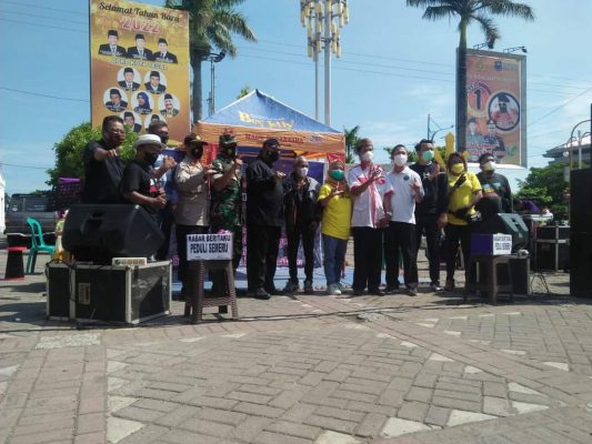 Nampak hadir dalam gerak penggalangan dana kepedulian Semeru, Minggu 23 Januari 2021 di Balai Kota Lawas (Balwas) , Budayawan Atmo Tan Sidik, Danlanal Tegal serta sejumlah pejabat dan seniman di Kota Tegal serta anggota Gerak Sedekah Tegal (GST)