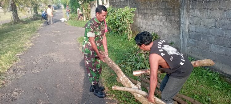 Persindonesia.com Jembrana,Menjelang Hari Raya Nyepi Tahun Caka 1945 Tahun 2023, Babinsa Desa Yeh Kuning, Koramil 1617-01/Negara, Sertu Made Yartana bersama sama warga melakukan gotong royong membersihkan halaman Pura Segara dan lingkungan lokasi yang akan digunakan sebagai upacara melasti dalam rangkaian hari raya Nyepi Tahun Caka 1945 yang akan di selenggarakan di Banjar Tengah, Desa Yeh Kuning, Kecamatan Jembrana, Kabupaten Jembrana, Sabtu (18/03/2023)