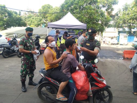 Dalam melakukan PPKM di Pasar Anyar Jalan Ahmad Yani Kelurahan Suka Asih Kecamatan Tangerang, Kota Tangerang, Koramil 01/Tgr menurunkan 4 personil di batu 2 BKO dan 4 orang Security untuk melakukan PPKM.