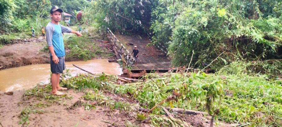 Kondisi jembatan itu semuanya jebol tersapu banjir, sehingga akses warga terputus,” ujarnya