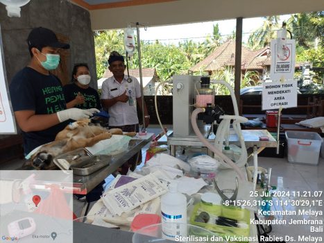 Persindonesia.com Jembrana – Dalam upaya menekan angka kasus rabies, Dinas Pertanian dan Pangan Jembrana bekerja sama dengan yayasan Seva Buana Denpasar dan komunitas pecinta anjing (dog lover Jembrana) menggelar kegiatan sterilisasi dan vaksinasi massal hewan penular rabies (HPR) di Banjar Pangkung Tanah Kangin, Desa/Kecamatan Melaya, Kamis (25/7).