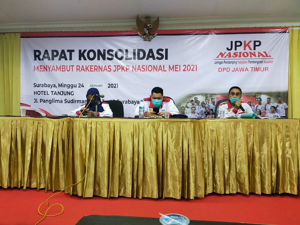Ketua DPD, Drs. Hakim Kadir, mengadakan Rapat Konsolidasi Persiapan dalam Rangka menyambut Rakernas JPKP Nasional Bulan Mei 2021 di Hotel Tanjung Surabaya. (Minggu,24/1/21)