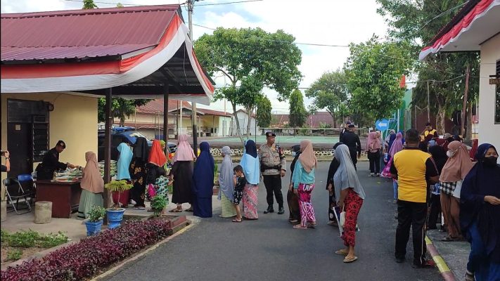 Ratusan Masyarakat yang mempunyai kupon berbondong-bondong mendatangi Mako Batalyon B Pelopor Satbrimob Polda Sulsel untuk mendapatkan sembako yang telah di siapkan.