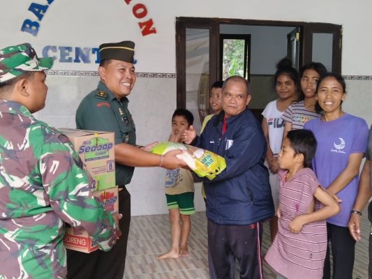 Dandim 1617/Jembrana Letkol Inf Teguh Dwi Raharja yang diwakili oleh Kasdim, Mayor Inf. I Gede Putu Wira Mahardika di dampingi Perwira Staf Kodim 1617/Jembrana dan staf Angel Ink Bali memberikan sembako kepada anak – anak yatim di Panti Asuhan Jimbar Kasih.
