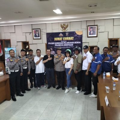 Kegiatan jumat Curhat Kapolresta Denpasar dilakukan di gedung pertemuan Kantor ATLI Benoa pada hari Jumat tgl (4/8) yang didampingi Kapolsek Benoa Kompol Tri Joko Widiyanto,A.Md, S.H. dan beberapa PJU Polresta Denpasar.