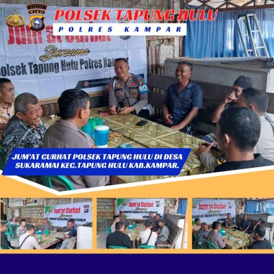 Kampar, Riau – Jumat Curhat, Kapolsek Tapung Hulu, AKP Nurman, SH, MH diskusi terkait situasi Kamtibmas bersama masyarakat Desa Sukaramai bertempat di Pasar Tradisional Sukaramai Dusun 2 Kecamatan Tapung Hulu Kabupaten Kampar, Jumat, (10/2/23), sekira pukul 09.00 WIB.