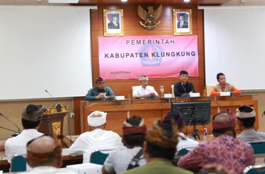 Turut hadir mendampingi Bupati, Sekda Kabupaten Klungkung, Anak Agung Gede Lesmana, Kalak BPBD Provinsi Bali, I Gede Agung Teja Bhusana Yadnya dan Kalak BPBD Klungkung, I Putu Widiada, di ruang Praja Mandala, Kantor Bupati Klungkung, Kamis (9/10).