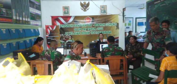 Danramil 1617-03/Melaya Kapten Inf Supena pada kesempatan tersebut menuturkan penyaluran (BTPKLW) BT-Minyak Goreng untuk wilayah Kecamatan Melaya hari ini akan disalurkan sebanyak 787 orang. Para penerima pun sebelumnya telah didata oleh para Babinsa jajaran di masing masing Desa/Kelurahan.