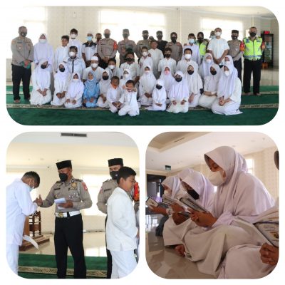 Sat Lantas Polres Metro Jakarta Pusat melaksanakan santunan kepada anak yatim piatu pada kegiatan Kamis Religi di Aula Lantai 6 kantor Polres Metro Jakarta Pusat Jl. Garuda Blok B2 No. 1 Kemayoran Jakarta Pusat, Kamis (13/01/2022).