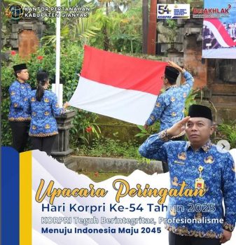 Gianyar Persindonesia.comΒ β Kantor Pertanahan Kabupaten Gianyar melaksanakan Upacara Peringatan Hari Korpri ke-54 pada Senin (01/12/2025) sebagai bentuk penghormatan atas dedikasi Aparatur Sipil Negara dalam mendukung penyelenggaraan pemerintahan dan pelayanan publik. Upacara berlangsung khidmat dan tertib di halaman kantor setempat.