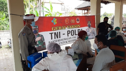 Gerai Vaksin Polres Gianyar menjalang hari kemerdekaan RI Ke 76 thn Polri Bersinergi TNI saling bahu membahu dalam pelaksanaan tugas negara menunjukan semangat juang mengenang Para Pahlawan Bangsa, dalam melayani masyarakat sehingga terwujud harapan bangsa menjamin keamanan dan ketertiban umum.