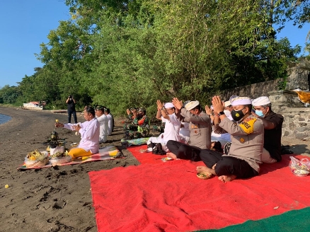 Denpasar | persindo – Tepat di hari Raya Kuningan Kapolda Bali Irjen Pol Putu Jayan Danu Putra, S.H., M.Si., bersama Gubernur Bali Dr. Ir. I Wayan Koster, M.M., ,doa bersama untuk KRI Nanggala 402, di Pelabuhan Lalang desa Sumberkelampok Gerokgak, sabtu (24/04/2021).